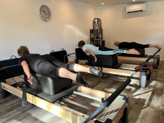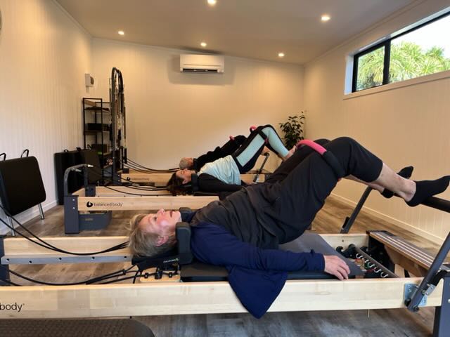 I run these Classes in my Boutique Pilates Studio with Reformer apparatus which is probably the most famous piece of Pilates equipment. The frame (carriage) moves on wheels and is attached at one end by a set of springs. These provide resistance as the carriage is moved. There is also a bar and straps, which can be used by legs and/or arms, for assistance/resistance. Shoulder Blocks ensure the correct head, neck and shoulder alignment.
